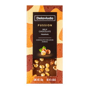 BARRA CHOCOLATE DELAVIUDA FUSSION AO LEITE COM AVELÃS INTEIRAS 130G