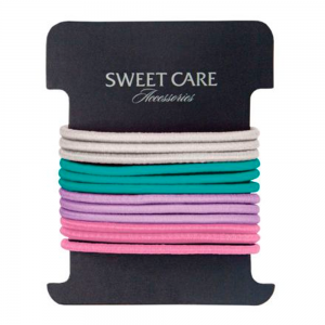 ELASTICO PARA CABELO SWEET CARE FINO CORES CLAROS COM 12 UNIDADES