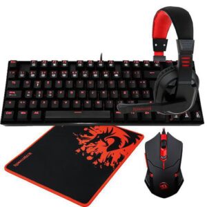Kit Gamer Redragon Essentials K552-BB-2 Teclado + Mouse + Mousepad + Fone / Blue / Ingles - Preto / Vermelho
