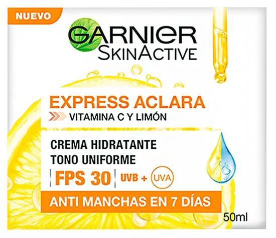 Descubre la Creme Hidratante Garnier Express Aclara con Vitamina C, un tratamiento de 50ML diseñado para iluminar y revitalizar tu piel. Su fórmula ligera y de rápida absorción hidrata profundamente, mientras que la Vitamina C ayuda a unificar el tono y reducir manchas. Ideal para todo tipo de piel, esta crema es perfecta para un uso diario, proporcionando un acabado radiante y saludable. Mejora tu rutina de cuidado facial con Garnier y disfruta de una piel más luminosa y fresca.
