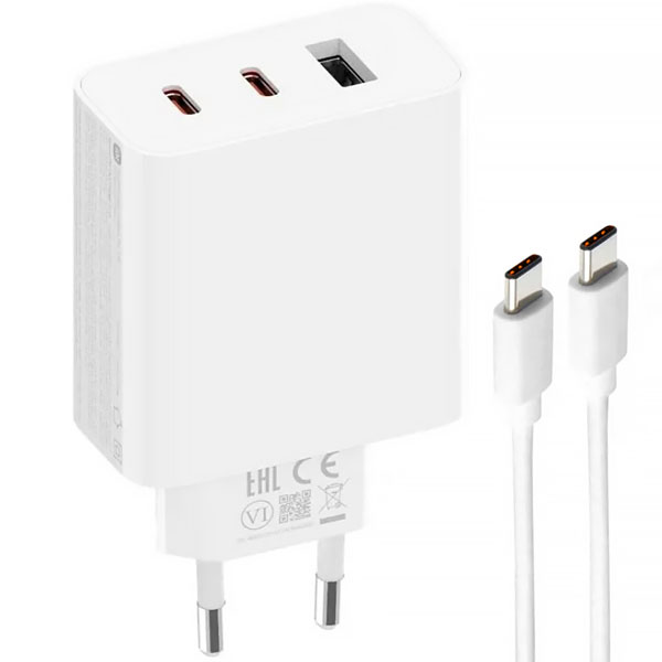 Carregador Xiaomi 67W Gan Charger 2C1A A07ZMEU 2 USB-C/USB de 67 Watts + Cabo USB-C