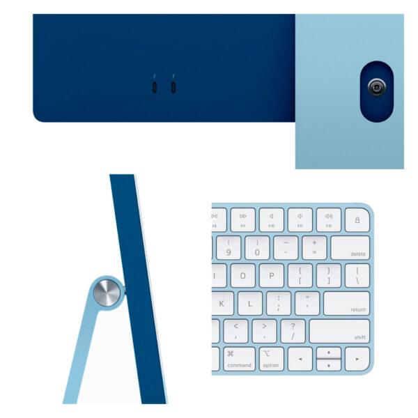 – Diseño Delgado y Elegante: Con solo 11.5 mm de grosor, el iMac M3 no solo es potente, sino también estéticamente impresionante. Su acabado en azul le da un toque moderno y sofisticado que complementa cualquier espacio de trabajo.